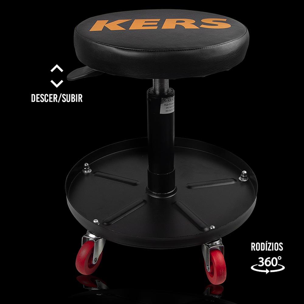 Banco Redondo com Rodízios e Bandeja de Ferramentas Kers