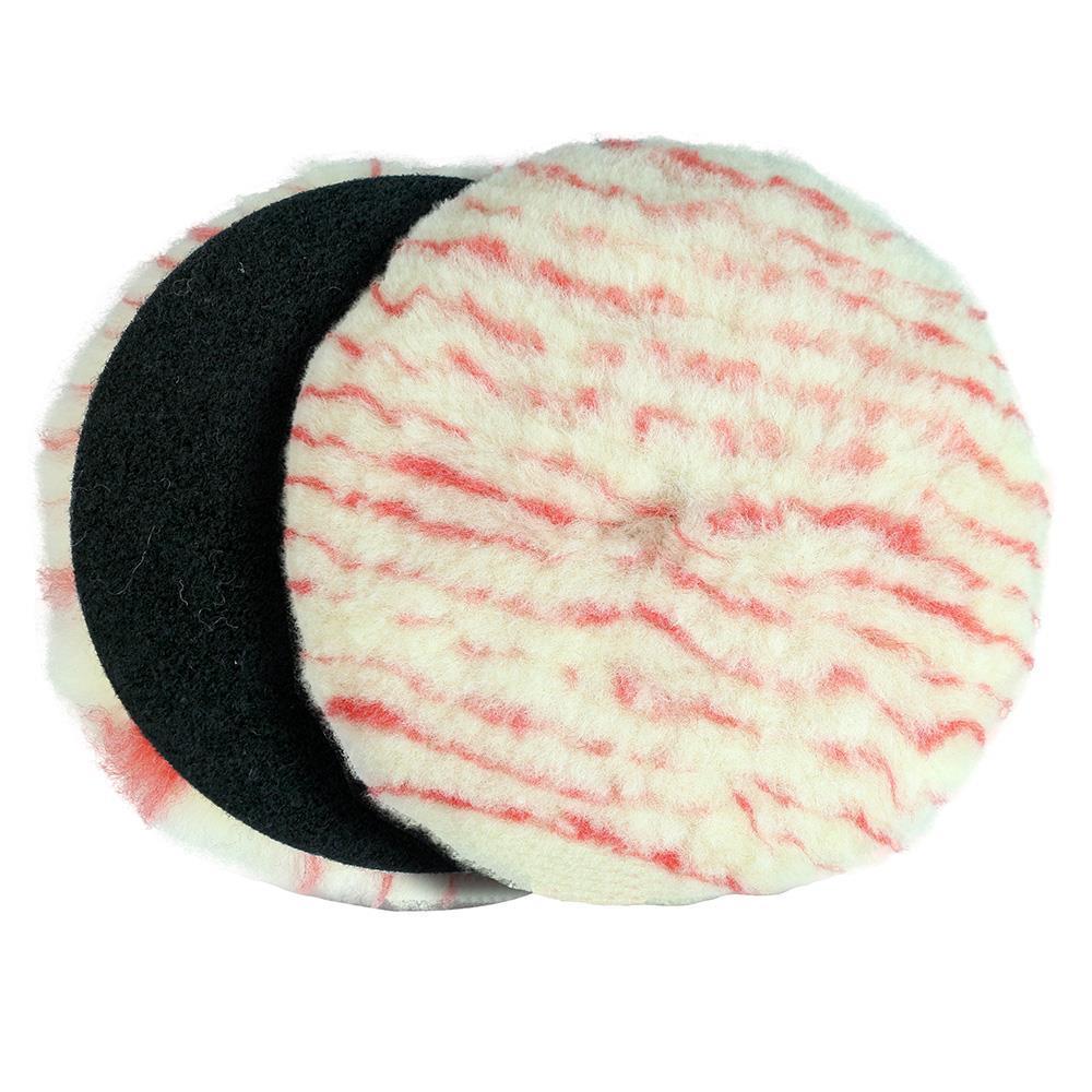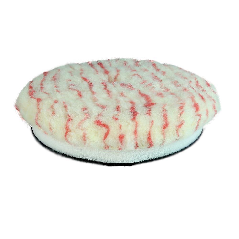 Lincoln Boina de Lã Pirulito Corte Pesado 5.5" possuí interface acoplado que ajuda a amortecer o impacto entre a boina e a superfície a ser polida e é de face única, tendo sua face uma lã branca com faixas vermelhas.