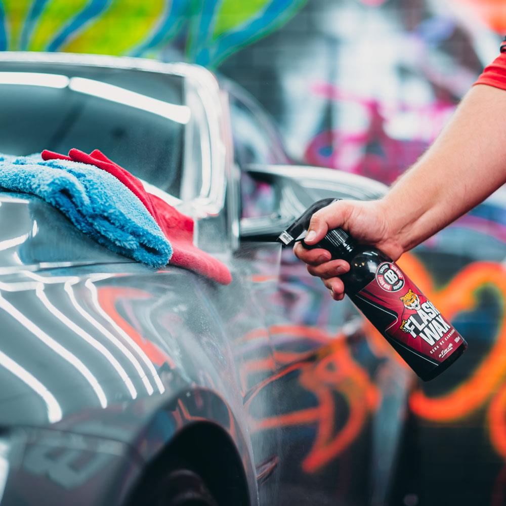 Com a superfície limpa, fria e seca, borrifar pequenas quantidades da Flash Wax diretamente na peça e com auxílio de uma Dub Towel de 350/400GSM ou o aplicador de microfibra DUB, espalhar a cera em movimentos suaves e circulares de forma homogênea. Aguardar a pré cura, remover e lustrar com a Dub Towel 500GSM.