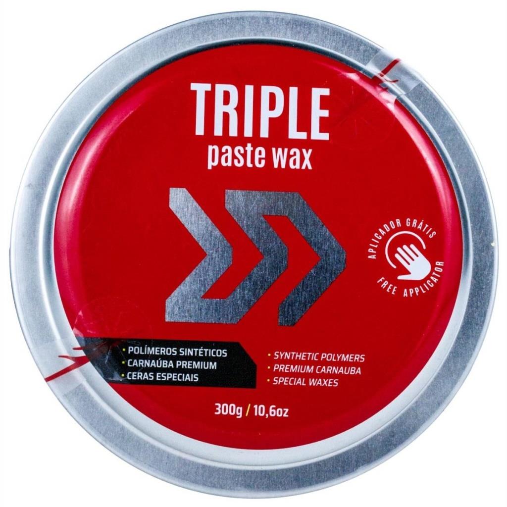 TRIPLE PASTE WAX é uma cera 3 em 1, que combina polímeros sintéticos, carnaúba super premium e ceras especiais. Oferece fácil aplicação e remoção, altíssimo rendimento e proteção ultra resistente.