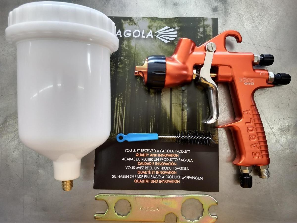 Corpo forjado,melhor ergonomia e manutenção de qualidade e eficiência de seus bicos (Alta transferência) e soluções de aplicativos, arma mais atraente e versátil em sua relação qualidade / preço com desempenho em todas as etapas da pintura.Com o novo 3300 GTO, Sagola culmina a fusão de seus dois prestigiados