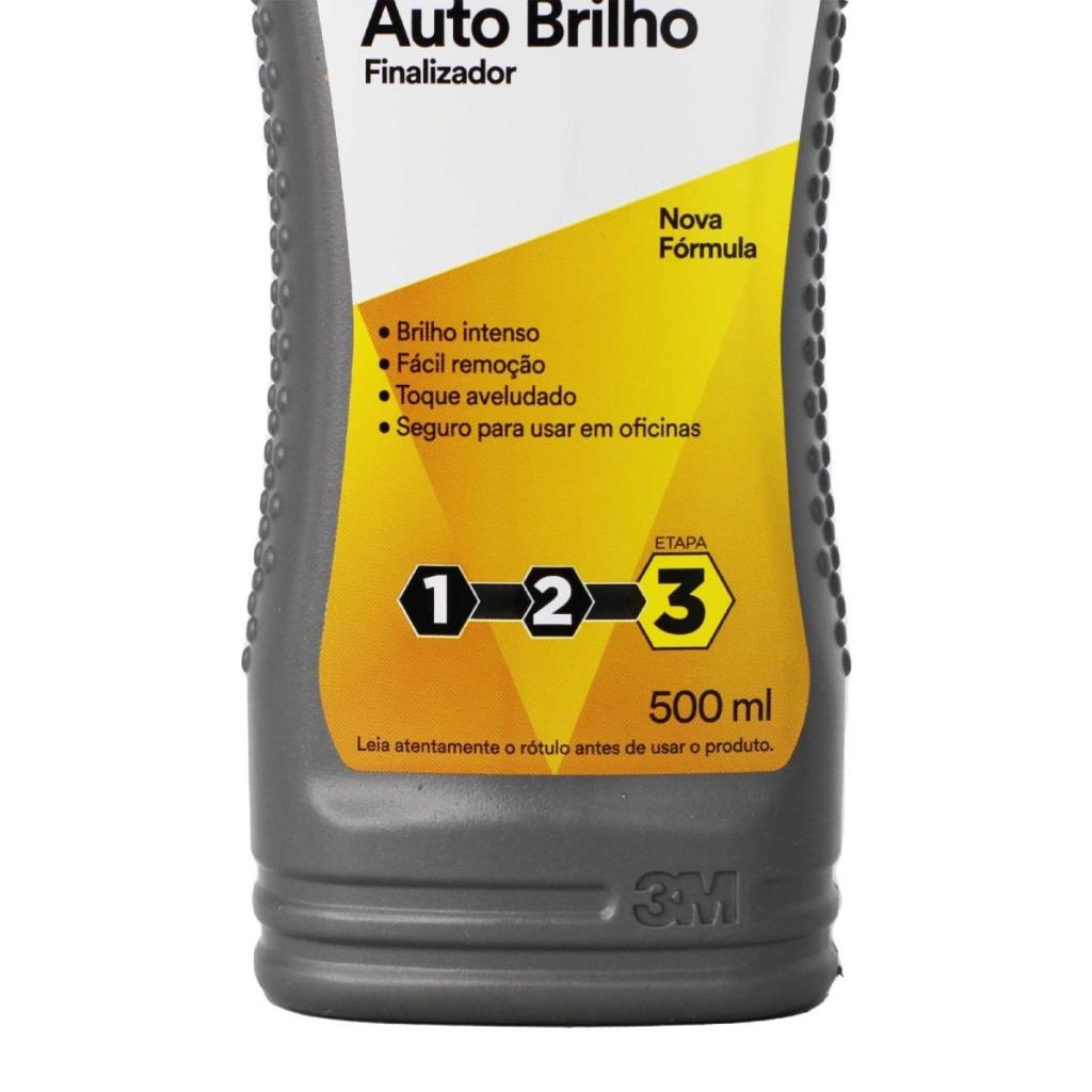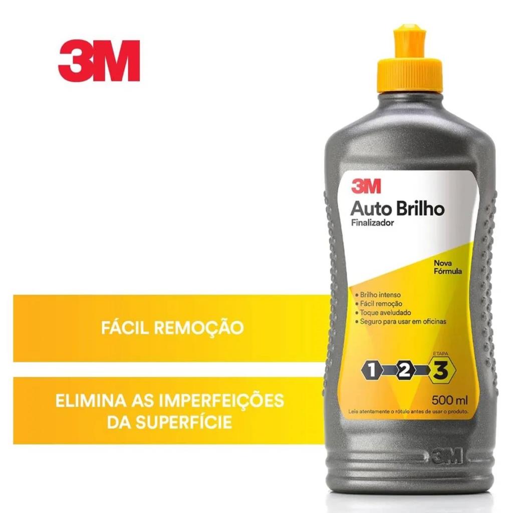 Auto Brilho 500ml 3M é um produto líquido, de aplicação manual, destinado ao acabamento de pinturas automotivas após o processo de polimento. Proporciona um brilho intenso e permite que os solventes da tinta evaporem normalmente.