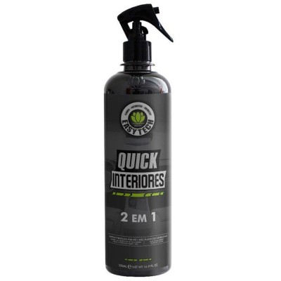Quick Interiores é uma solução rápida para limpeza e proteção de interior de veículos. Perfeito para uma limpeza de manutenção rápida e eficiente, deixando um acabamento acetinado perfeito, tal qual novo. Além do poder de limpeza e proteção, Quick Interiores traz um agradável cheiro proporcionando ao habitáculo do veículo a sensação de conforto e bem estar.