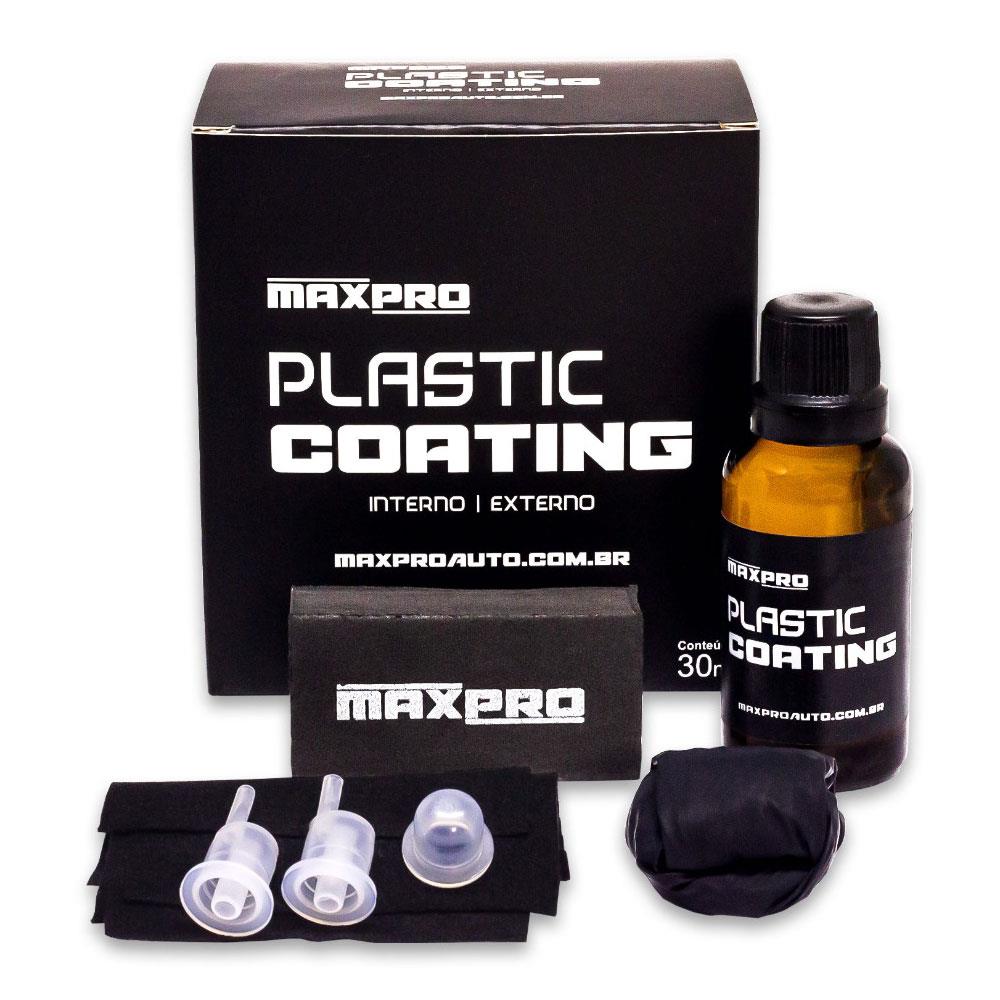 O MaxPro Plastic Coating é um vitrificador de alto rendimento e extrema facilidade de aplicação formulado especialmente para plásticos. Tem como principal finalidade proteger partes plásticas internas e externas de todos os tipos de veículos. Desenvolvido com o que há de mais moderno em nanotecnologia confere proteção à superfície revestida por até 24 meses. Devido à sua formulação balanceada entre dureza e flexibilidade promove resistência, hidrorepelência e aspecto de renova a superfícies derivadas de polímeros. Após aplicado o produto promove proteção extra contra agressões do dia a dia como raios UV, altas temperaturas, corrosão, oxidação, agressões químicas advindas de seiva de árvores, fezes de pássaros e uso de produtos indevidos, evitando assim a degradação, descoloração e ressecamento dos mesmos, mantendo o aspecto de novo e bem cuidado por muito tempo. A cura parcial ocorre em apenas 30 minutos. A cura total ocorre em 24 horas após a aplicação. Rendimento: 8 à 10 carros.