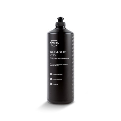 Nasiol CleaRub 705 é um composto de acabamento com alta tecnologia projetado e aprimorado para remover marcas de polimento, micro arranhões e hologramas. Pode ser usado em tintas novas e antigas para obter um efeito de brilho profundo. Entrega um trabalho sem resíduos, ultra lubrificado e com rendimento incrível. Sua fórmula sem silicone garante um acabamento verdadeiramente perfeito.Recomendado para profissionais que buscam a perfeição e o máximo nível de brilho, sem abrir mão da agilidade no processo.