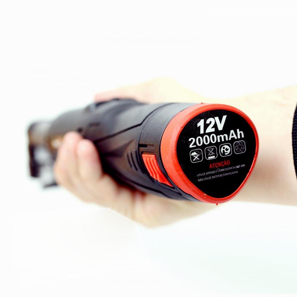 - 2 baterias 12V (2,0Ah, Li-Ion) com autonomia de até 1 hora cada;