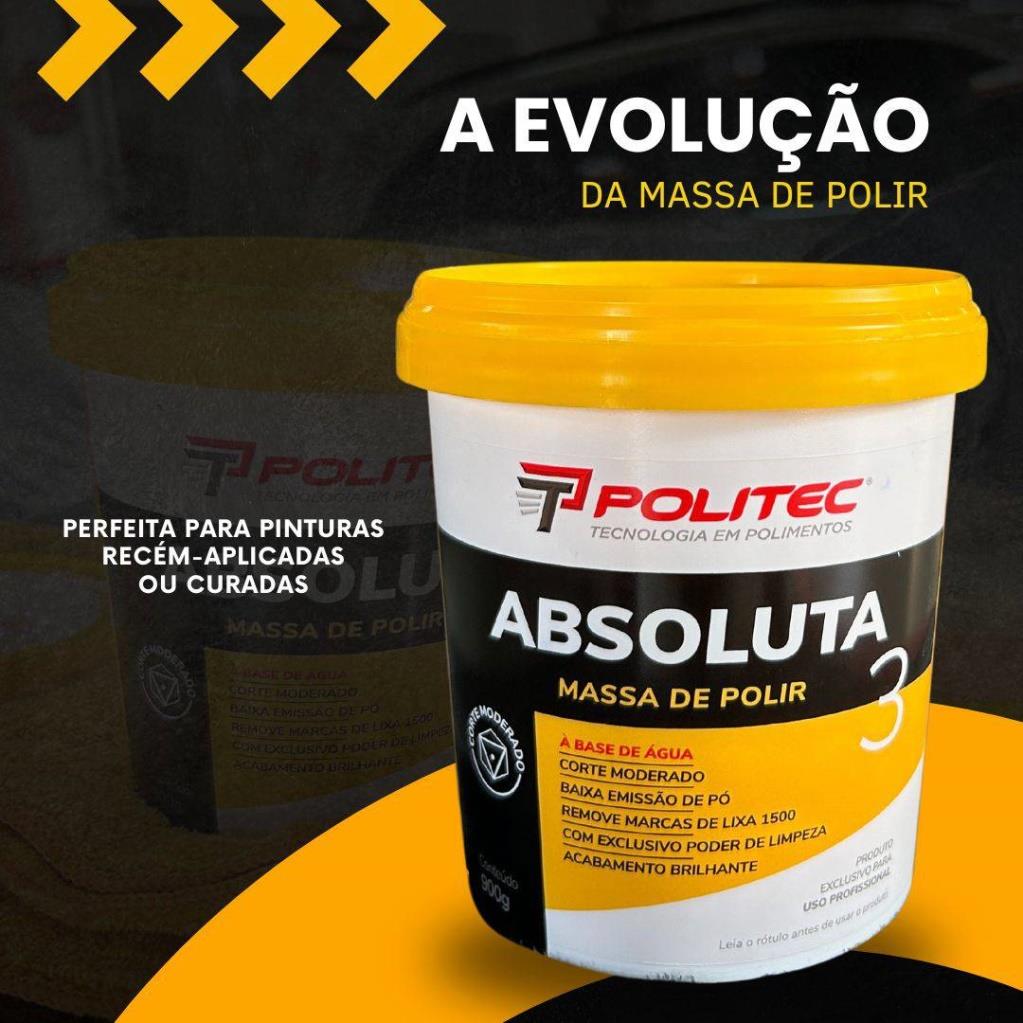 Adeus Gariba, Bem-vinda Absoluta 3! Chegou a Absoluta 3 Politec, a massa de polir que vai transformar seu processo de polimento! Sem ceras e silicones, ela oferece mais segurança, brilho e eficiência, ideal para superfícies recém-pintadas e ambientes controlados.