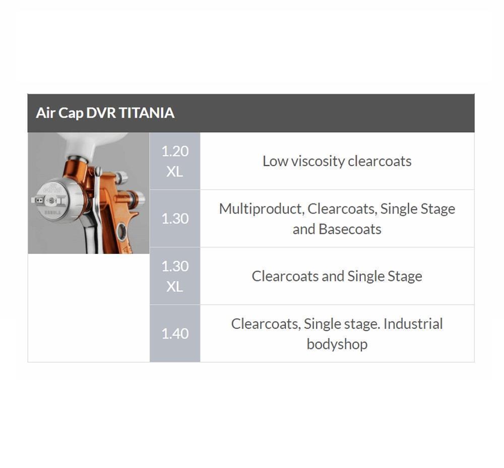 - Consumo de ar (2 bar entrada) DVR TITANIA: 315L/min.