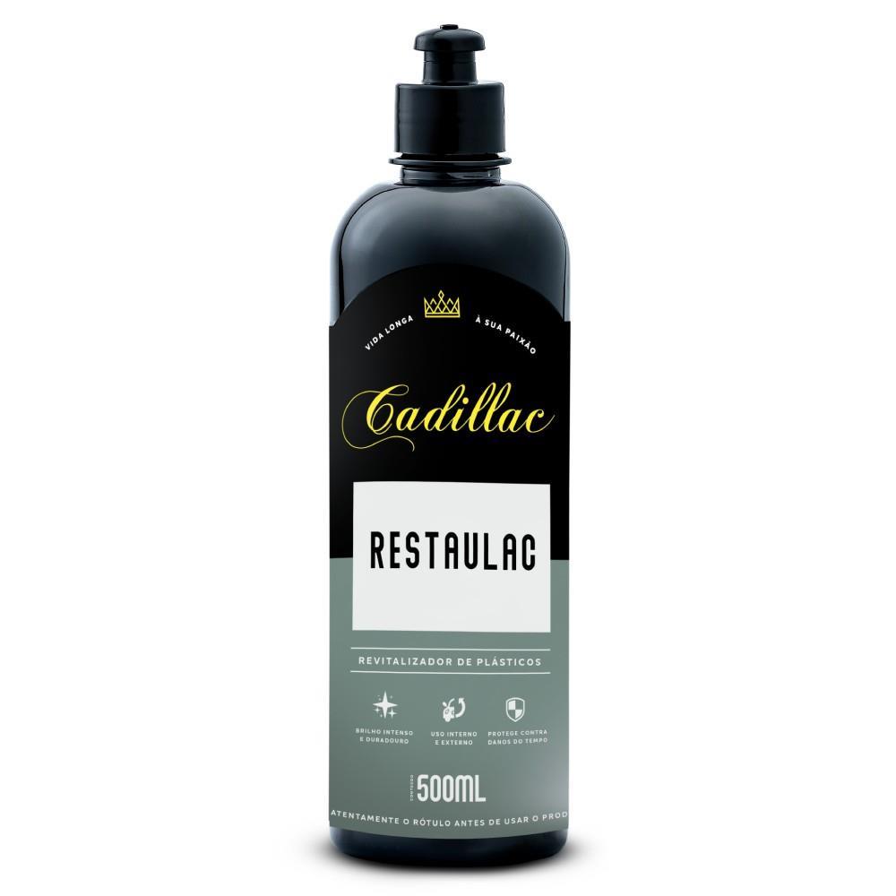 O brabo dos plásticos chegou: RESTAULAC da Cadillac. O revitalizador de plásticos RESTAULAC garante 6 meses de brilho e proteção aos plásticos internos e 3 meses para os plásticos externos. RESTAULAC restaura para-choques, para-lamas, painéis, laterais de portas, entre outras partes do veículo. A formulação ainda garante uma camada de proteção para prevenir contra o ressecamento e desgaste, com uma super repelência à água.