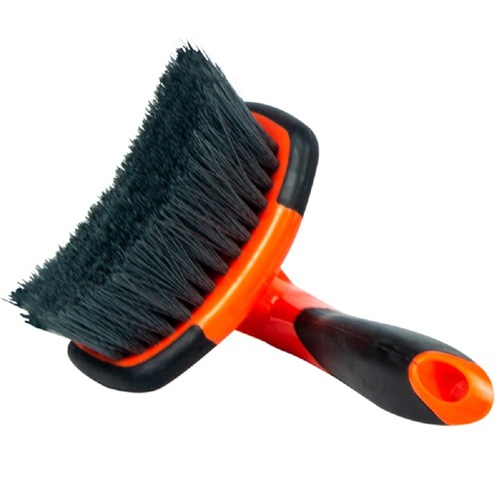 Sua curva suave proporciona a esta escova uma definitiva vantagem sobre as outras, foi projetada para limpar a curvatura dos pneus com maior agilidade.