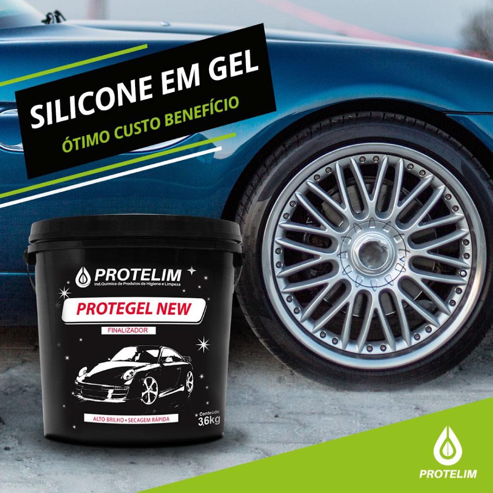 Ótima opção para quem quer alto brilho, PROTEGEL NEW é uma mistura de silicones com glicerina indicado para uso externo, funcionando como um pretinho em gel, pois revitaliza, protege e dá brilho às superfícies, especialmente nos pneus, e previne ressecamentos ocasionados pelo tempo em peças plásticas, borrachas e materiais sintéticos onde é aplicado.