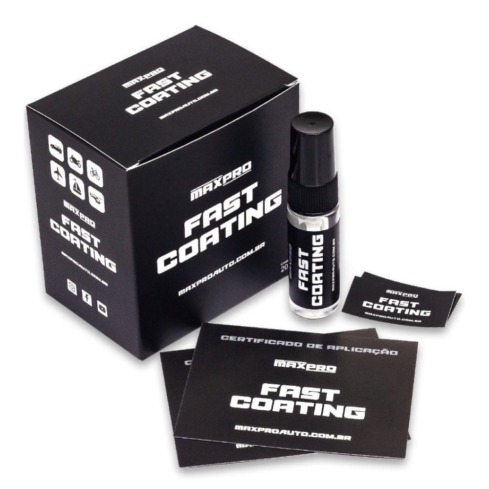 O MaxPro Fast Coating é um vitrificador em spray de alto rendimento e extrema facilidade de aplicação. Tem como principal finalidade proteger a pintura e demais superfícies de todos os tipos de veículos. Desenvolvido com o que há de mais moderno em nanotecnologia confere proteção à superfície revestida por até 1 ano. A facilidade na aplicação e o desempenho do MaxPro Fast Coating proporcionam à superfície tratada proteção com brilho profundo e duradouro e alta repelência a água e a sujidades em geral, além de acabamento macio e suave. Após aplicado o produto promove proteção extra contra riscos e arranhões, efeito hidro-repelente, resistência à raios UV, altas temperaturas, corrosão e oxidação, proteção contra seiva de árvores e fezes de pássaros, além de acabamento com brilho profundo, durabilidade e toque suave. Os produtos MaxPro não são removidos na lavagem. A cura parcial ocorre em apenas 2 horas. A cura total ocorre em 24 horas após a aplicação. Rendimento: 2 à 3 carros.