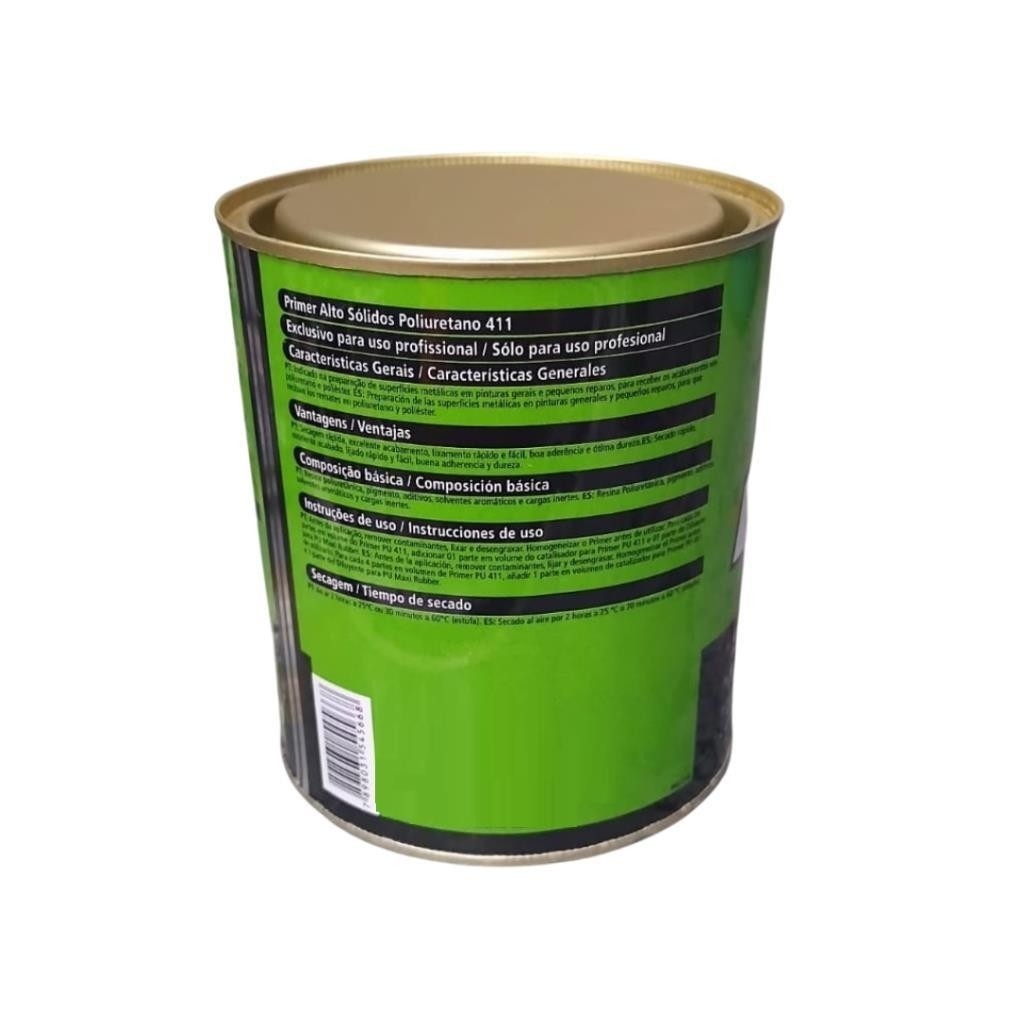 Primer PU 411 Alto Sólido Cinza Automotivo 900ml Maxi Rubber