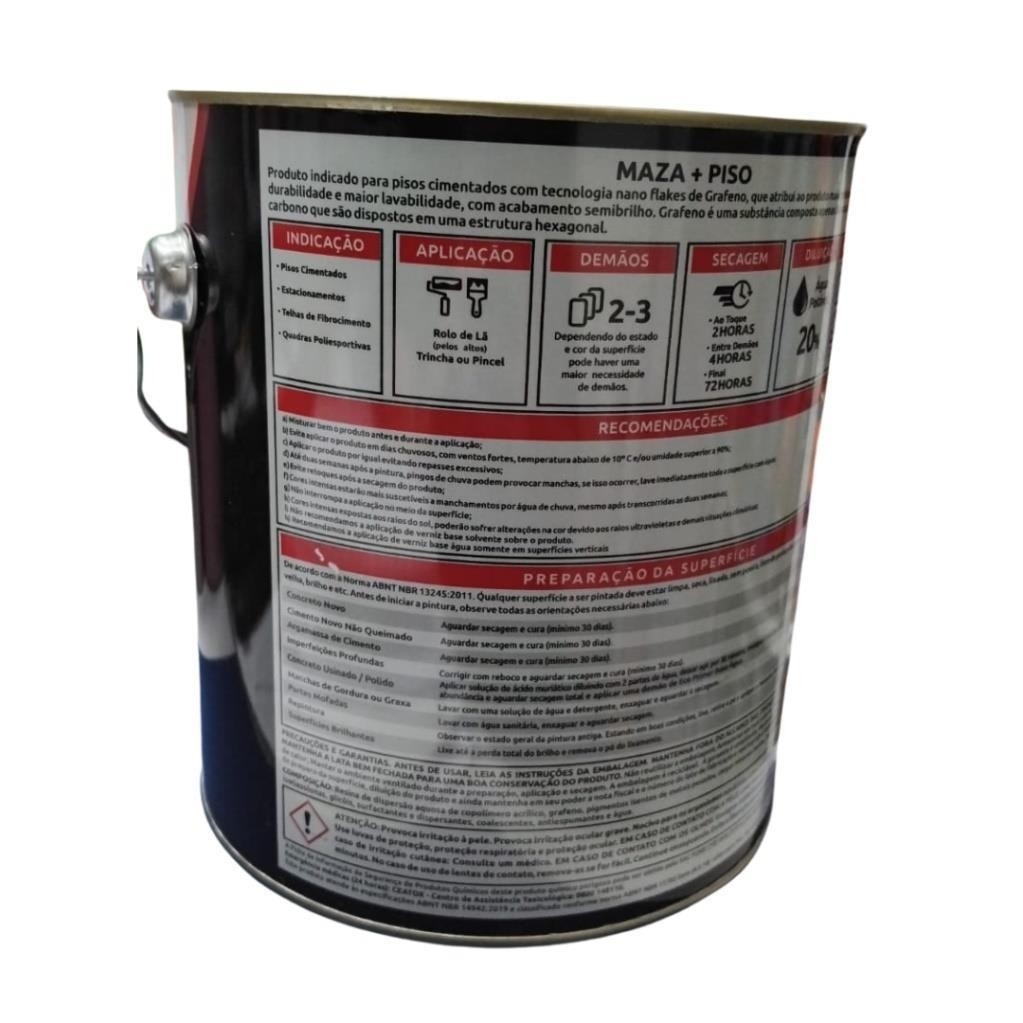Tinta Piso Grafeno Mais Resistência Brilho Maza 3,6l Vermelho Segurança