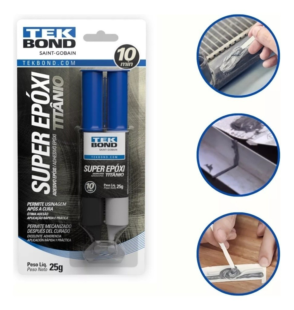 Super Adesivo Epóxi Titanio Cola Cinza Seringa 25g Tekbond